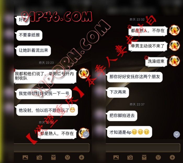 一场四人行上集敬献给大家,多余的文字就不再描述了。本季人妻夫对白、本季一号单男对白、本季二号单男对白已将本季活动的准备、开始、结束全过程描述的淋漓尽致了!
